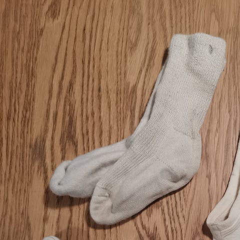 Sukat jäivät meillä heti pieniksi, käytetty paristi unisukkina.