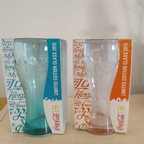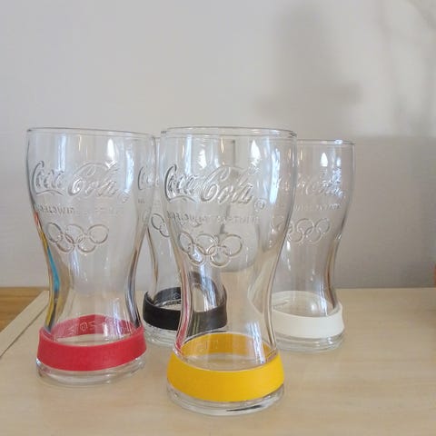 Alkuperäispakkauksessa oleva mustarenkainen McDonald's-lasi Lontoon olympialaisista v. 2012.