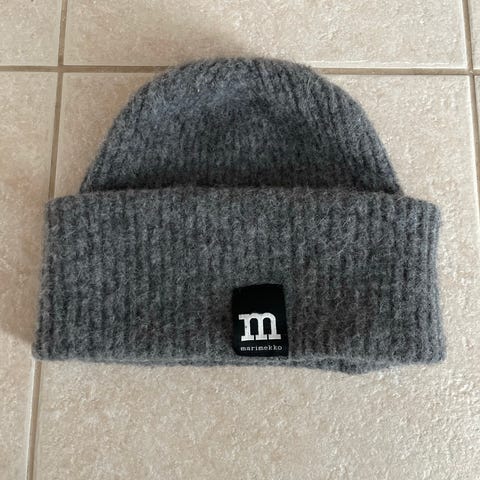 "Pjettar-pipo on neulottu paksusta, lämpimästä alpakkavillasekoitteesta. Pipossa on leveä käänne, jossa on Marimekko-tuotemerkkilappu. Tuote sisältää 32 % sertifioitua, vastuullista villaa."