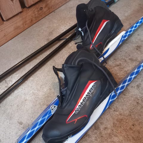 Myydään vähän käytetyt suksisetti luisteluhiihtoon.