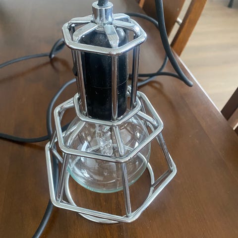 Käyttökunnostettu valaisin. Sähköjohto vaihdettu koko matkalta uuteen, joten turvallinen käyttää. Lampun päällä oleva nappi ei siis toimi enää katkaisijana, vaan katkaisija on virtajohdossa. Tanskalaista designiä vuosien takaa. Pöytäkiinnitys.