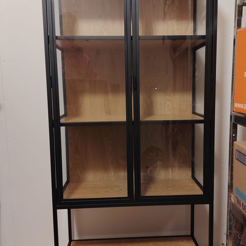 Iso laadukas vitriinikaappi. Painaa paljon. Muistuttaa ulkonäöltä Gustavin vitriinikaappia. Tämä saatiin kokonaisena kannettua edellisestä asunnosta tänne. Tulevaan paikkaan ei tule mahtumaan.