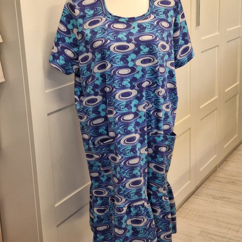 Mekon/tunikan pituus olka-helma 90cm ja Kainalo-kainalo 56cm.