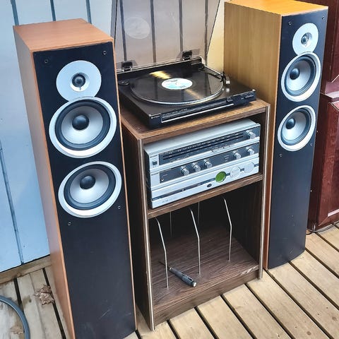Varaosiksi tai kunnostettavaksi otsikon mukainen levysoitin/vahvistin.