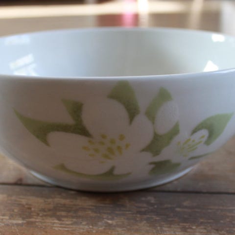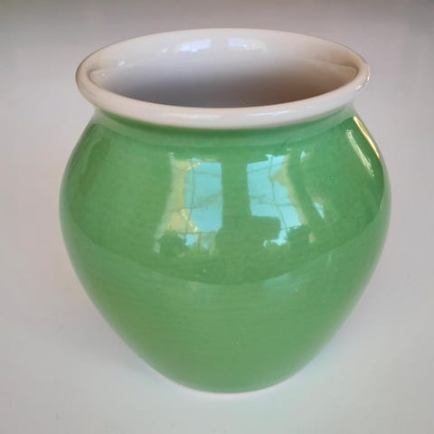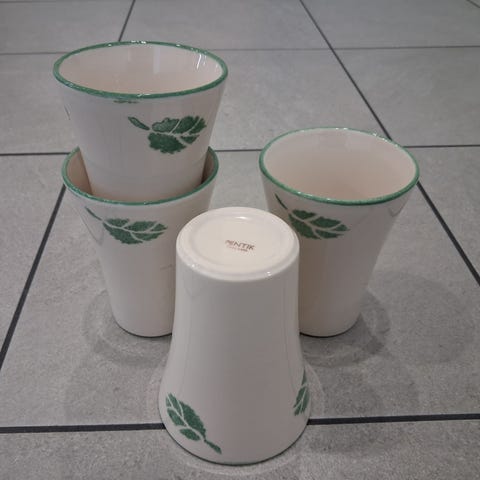Siistikuntoinen Pentikin muki, jossa kuvituksena vihreä omenapuu. Sarjan valmistus on lopetettu.