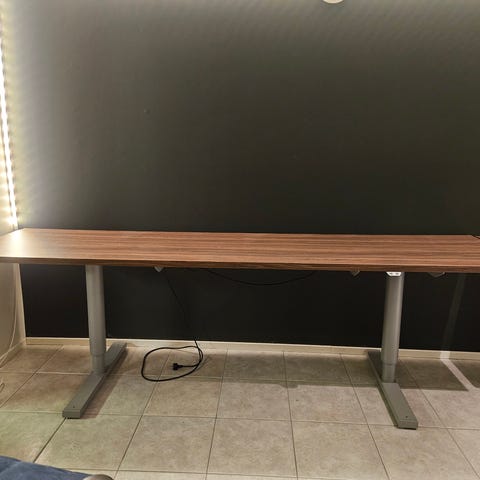Vahvat sähköpöydän jalat ( + kaikki niihin kuuluvat osat mukaan ) sekä yksi ISKUN kansilevy mukaan. Kannen koko 120×80.