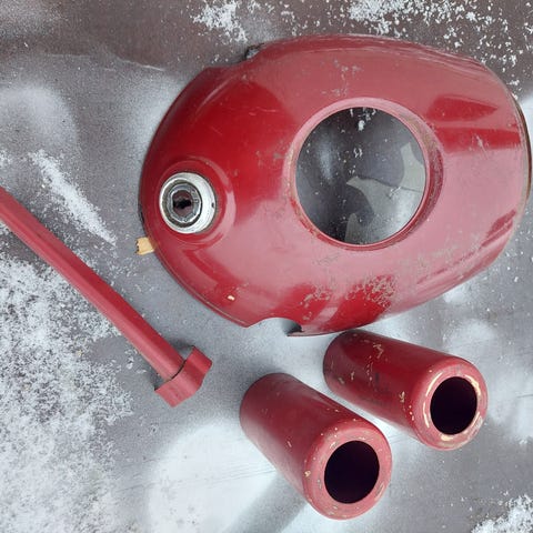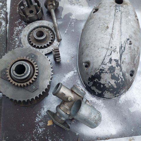Kuvassa näkyvät jawan koneen osat. Postitankin