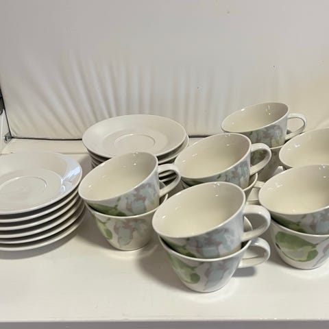 Hyväkuntoiset kaksi Pentikin lautasta. Normaaleja käytön jälkiä, eli pieniä aterimien jättämiä jälkiä pinnassa. Halkaisija 21 cm. Kuvituksena vihreä omenapuu, jonka valmistus lopetettu.