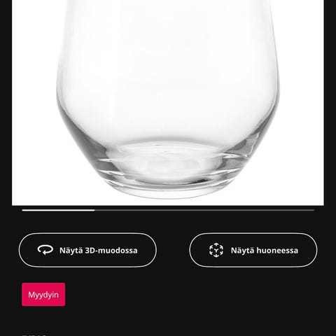 Erittäin hyväkuntoiset Ikea Ivrig juomalasit, väri kirkas. Lasin vetoisuus 45cl. Hinta yhteensä kuudelle lasille.