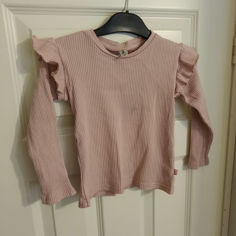 Keikin valkoinen paita kukka- ja perhoskuviolla. Pientä tahraa edessä ja hiassa. Koko 98. Mahdolliset postikulut lisätään hintaan.