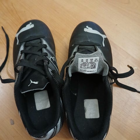 Puma 31 koon mustat nappikset,jalkapallokengät,sisämitta 18,5cm Nike säärisuojat