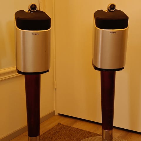 Myydään Philipsin kaiuttimet (2 kpl) ja mittatilaustyönä tehdyt metalliset jalat. Koko paketti yhteensä 20€.