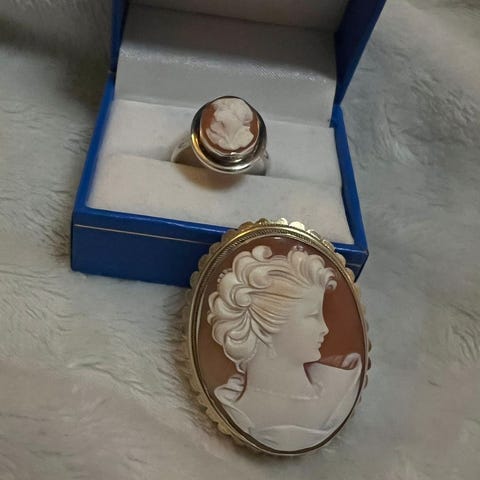 Välimeren korallin cabochonit tällä koolla, noin 15 mm halkaisijaltaan, olivat silloin jo hyvin harvinaisia ja nykyäänkin paljon harvinaisempia.