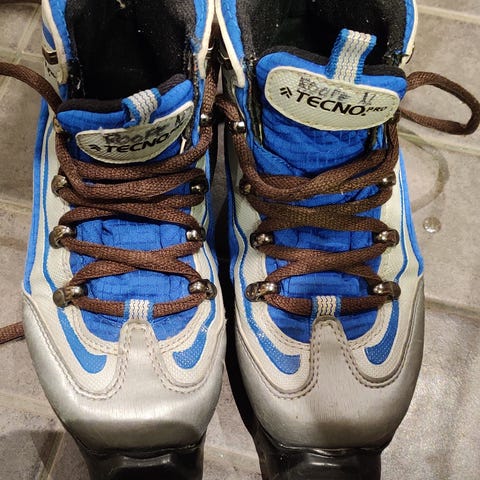 Ulkovarastossa asustelleet ja jokusen hiihtokilometrin nähneet, mutta käyttökelpoiset SNS-monot. Näihin kuuluvat sukset/siteet ovat edesmenneet, mutta monot vielä jäljellä, jos kaipaat just SNS-mallia.