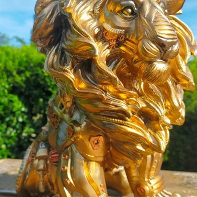 Upea kuva alumiinista hevosen päästä, valmistettu antiikkimallin mukaan.