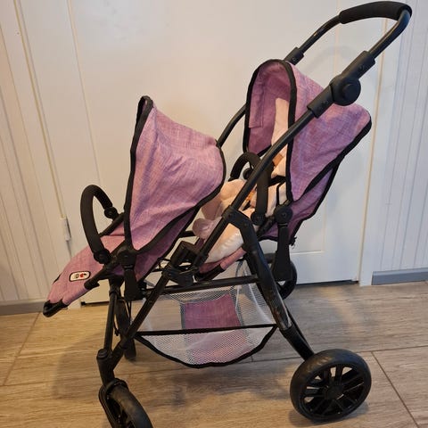 Nukke, vaunut, tuplarattaat, kaksoisrattaat, vaaleanpunainen, vaaleanpunaiset