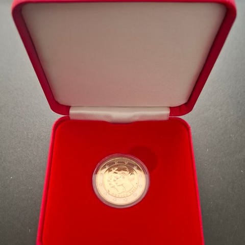 2 € Prince Albert II, Belle Epreuve, lahjapakkauksessa (kevyitä kellastumia kotelossa) ja sertifikaatin kanssa.