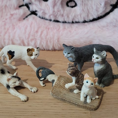 Schleich kissa paketti. Hyväkuntoisia, jotain pienempää käytönjälkeä voi olla :)