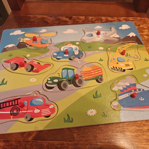 Myydään puinen nuppipalapeli Autot-teemalla. Kunnoltaan siisti käytetty, pinnoissa vähän kulumaa kuvissa näkyvään tapaan. Kuitenkin ehjä, ja hyvä leikkeihin seuraavalle autot-fanille.