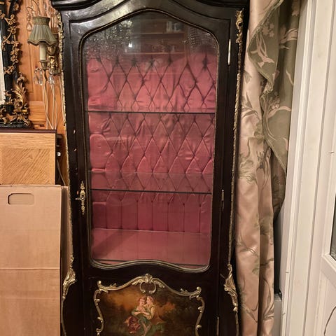 Senkki hyvä kuntoinen. K140cm, L145cm ja S45cm. Laatikossa päiväys 1,11,1936. Vitriini muuten hyvä kuntoinen paitsi yhden sivun lasi puuttuu. Nouto Nurmijärvi kk. Käteinen/mp 500€/tarjous harkintaan.