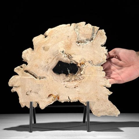 Upea kivettyneen puun viipale räätälöidyllä jalustalla.