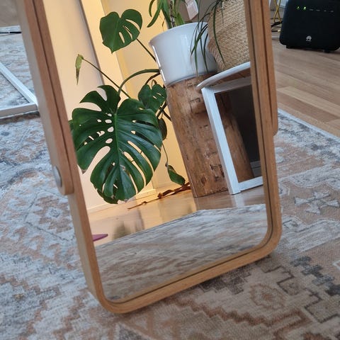 Myydään tarpeettomana peili pöydälle/seinälle. Kehys rottinkia.