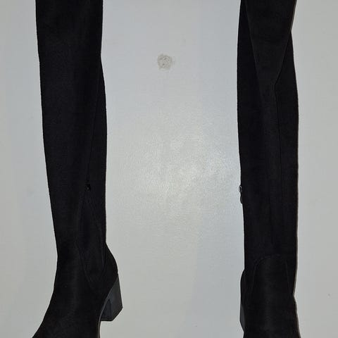 Myydään ruskeat, konjakin väriset ylipolven saappaat. Käyttämättömät, mutta paikoin hyvin pientä kulumajälkeä säilytyksestä.