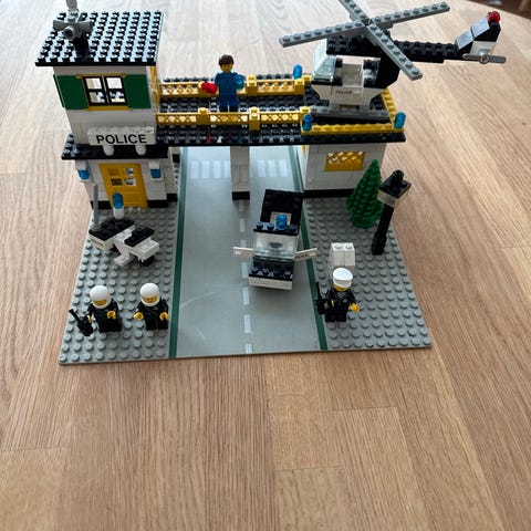 LEGO City poliisilaitos 6384, poliisiauto ja helikopteri osia.