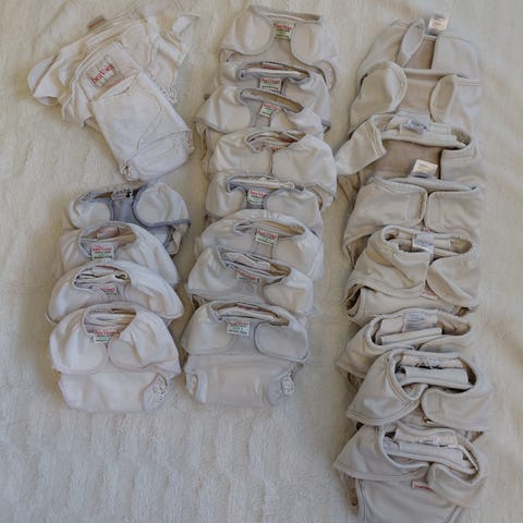 Jotain pientä värjäymää saattaa olla muutamassa vaipassa, mutta en saanut niistä kunnon kuvaa kun olivat niin haaleita. Pesty 60 asteessa hajusteettomalla pesuaineella.