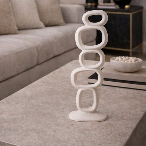 Tämä nykyaikainen metallinen maski-skulptuuri esittelee voimakkaan, minimalistisen muodon, joka luo vaikuttavan kohokohtan sisä- tai ulkotiloissa. Sen veistoksellinen pinta ja abstrakti ilmaisu lisäävät syvyyttä ja luonnetta moderneihin sisätiloihin ja puutarha-alueisiin. Vinkki: sijoita skulptuuri valon tai lampun eteen luodaksesi dramaattisen siluetin ja ainutlaatuisen visuaalisen efektin. Tyylikäs statement-osa keräilijöille ja designin ystäville.
