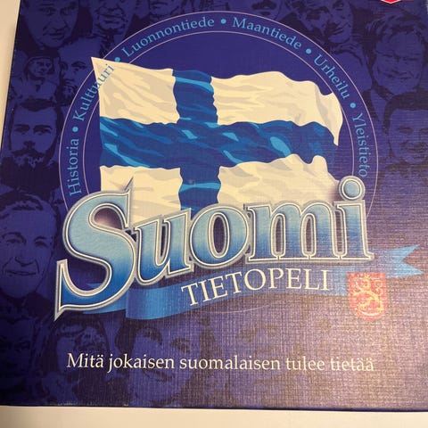 Myydään Suomi-tietopeli, sisältää 200 kysymystä Suomesta. Lautapelin alkuperäinen hinta 33e.