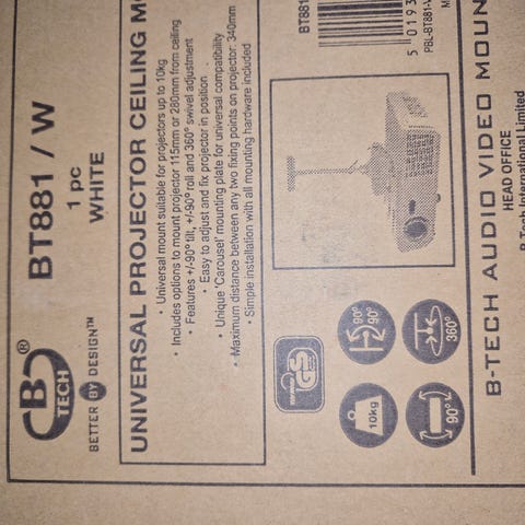 Mahdollisuus ostaa laadukas Vogels -merkkinen projektoriteline lisähintaan 25€ (kts. viimeinen kuva). Suunniteltu kattoasennukseen, jonka vuoksi telineessä säädettävä katselukulma.