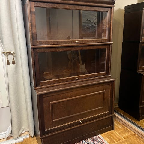 Hyväkuntoinen elementeistä koostuva Björkman hyllykkö.