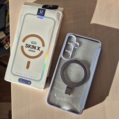 Läpän takaosa on suunniteltu siten, että sitä voidaan käyttää puhelimen jalustana. Tämä on erittäin hyödyllistä, kun haluat katsoa elokuvaa puhelimellasi tai soittaa videopuhelua pitämättä laitetta kädessäsi.