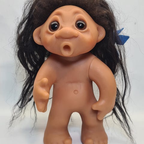 Retro trolli peikko. Pituus korvan ylänipukasta varpaan kärkeen 19 cm.