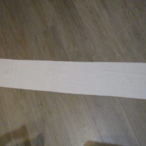 Myyn kuvanmukaisen luonnonvalkoisen kaulaliinan. Koko 28 x 135 cm. On kulkenut vain tuolla vaatekaapissa pitämättömänä.