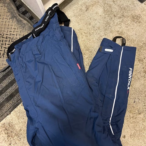 * Finntackin välikausihousut, jo elämää nähneet ja paljon käytetyt mutta täysin ehjät. Koko S. Hinta 20€