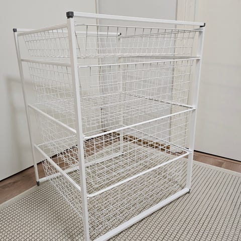 Todennäköisesti Elfan. Ei vikoja. Neljä hyllyä ja mitat näkyvät kuvissa.