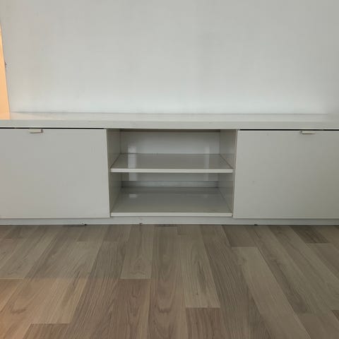 Myydään uuden tieltä valkoinen hyväkuntoinen tv-taso. Tasossa näkyvillä "ylä- ja alahylly" sekä kaksi laatikkoa joissa samanlainen hyllysysteemi. Taso kiiltävä, ei matta. Tv, eikä muut kuvassa näkyvät asiat kuulu mukaan kauppaan.