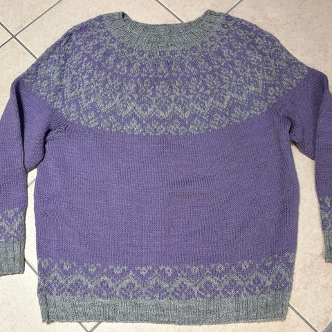 Uusi, muhkea, lämmin Novita super chunky -langasta neulottu islantilaistyyppinen paita.