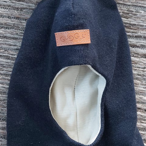 Gugguun XS-kokoinen kypärämyssy. Viime vuonna uutena ostettu, ja sanoisin että alle 10 kertaa käytössä ollut. Meillä tupsut painoivat liikaa ja siksi ei ollut käytössä säännöllisesti.