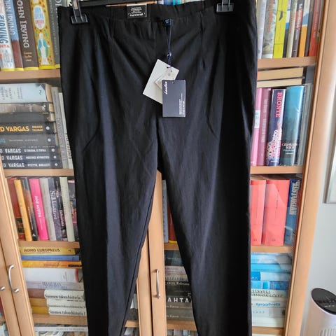 Uudet Laurie mustat ihmehousut viskoosin, polyesterin ja elastaanin sekoitetta. Malli regular Betty M-lahkeella. Koko 50, mitat venyttämättä vyötärön ympärys 97cm ja leveä kuminauha joustaa reilusti, vyötärö-lahkeensuu 110cm, haara-lahje 80cm ja haara-vyötärö 48cm. Näissä tosiaan laput kiinni edelleen, vain sovitettu. Jääneet kaappiin ja ovat nyt itselle liian suuret. Ovh 99e, myyn hintaan 30e/housut. Näitä löytyy 2 paria.