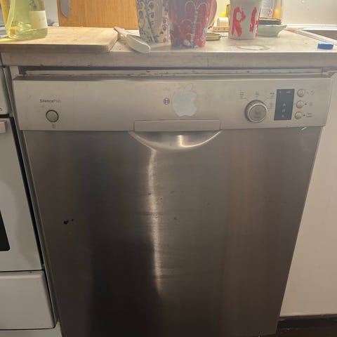 Boschin astianpesukone. Toimittanut väliaikaisen tiskikoneen virkaa autotallissa keittiöremontin ajan. Säilytetään tälläkin hetkellä samaisessa lämpimässä autotallissa. Ainoa miinus taitaa olla tuo lommo vasemmalla alakulmassa, josta on kuvakin. Saa tulla kaljalaatikolla hakemaan.
