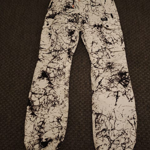 Vähän käytetyt, mutta lahkeiden suissa vähän kulumaa ja pienet pintakankaan reikäviillot (kuvissa merkitty punaisella), jotka eivät vaikuta toiminnallisuuteen. Muuten siistit ja hyvässä kunnossa.