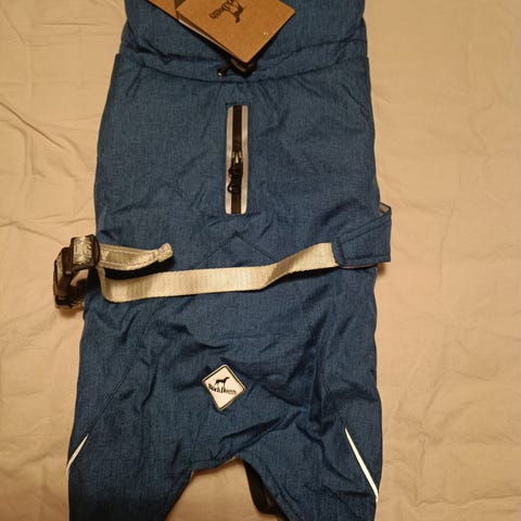 Vain sovitettu mantteli koko 40. Selän mitta kauluksesta 40cm, ympärys mittaa on reilusti. Hyvät heijastimet, jalkalenkit. Materiaali kestää kosteuden.