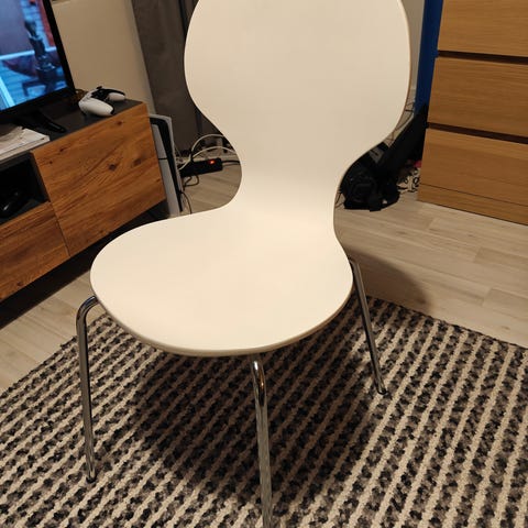 Merkkiä en valitettavasti tiedä. Vain muutamia kulumakohtia ja yksi ruuvi karannut (kuvassa). Mukavat istua (ja työskennellä). Myydään vain kaikki 4 kpl yhdessä. Nouto Neulamäestä vko 7 (pe-su) tai vko 8 (ma-pe).