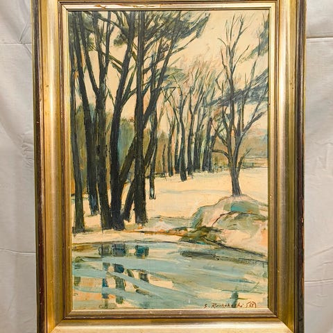 edesmenneen taiteilijan öljytyö v 1970. koko 53x60cm