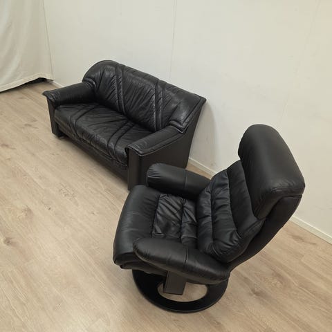 Todella hyvässä kunnossa oleva sohva ja kaksi nojatuolia.
