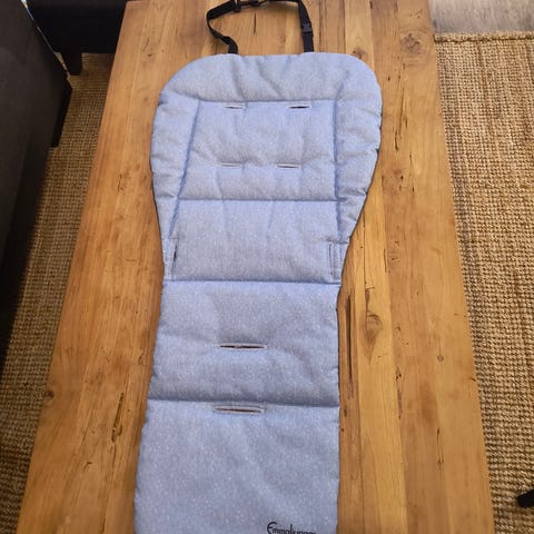 Myydään sininen siisti Emmaljunga istuinpehmuste. Ainut istuinpehmuste joka on riittävän pitkä jotta suojaa rattaita myös kuraisilta jaloilta. Toinen puoli pehmoista materiaalia ja toinen puoli helposti pyyhittävää kangasta. Suojannut rattaita lialta erinomaisesti.