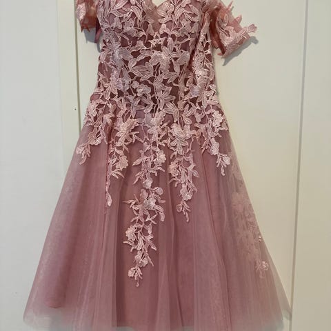 Kaunis kimaltava juhlamekko. Ollut yhdellä tytöllä rippimekkona. Nyöreillä saa sopivan kokoiseksi. Koko 30 (vastaa XXXS?). Väri nude pink. Säilytyspussi kaupan päälle. Nouto Keravalta.
